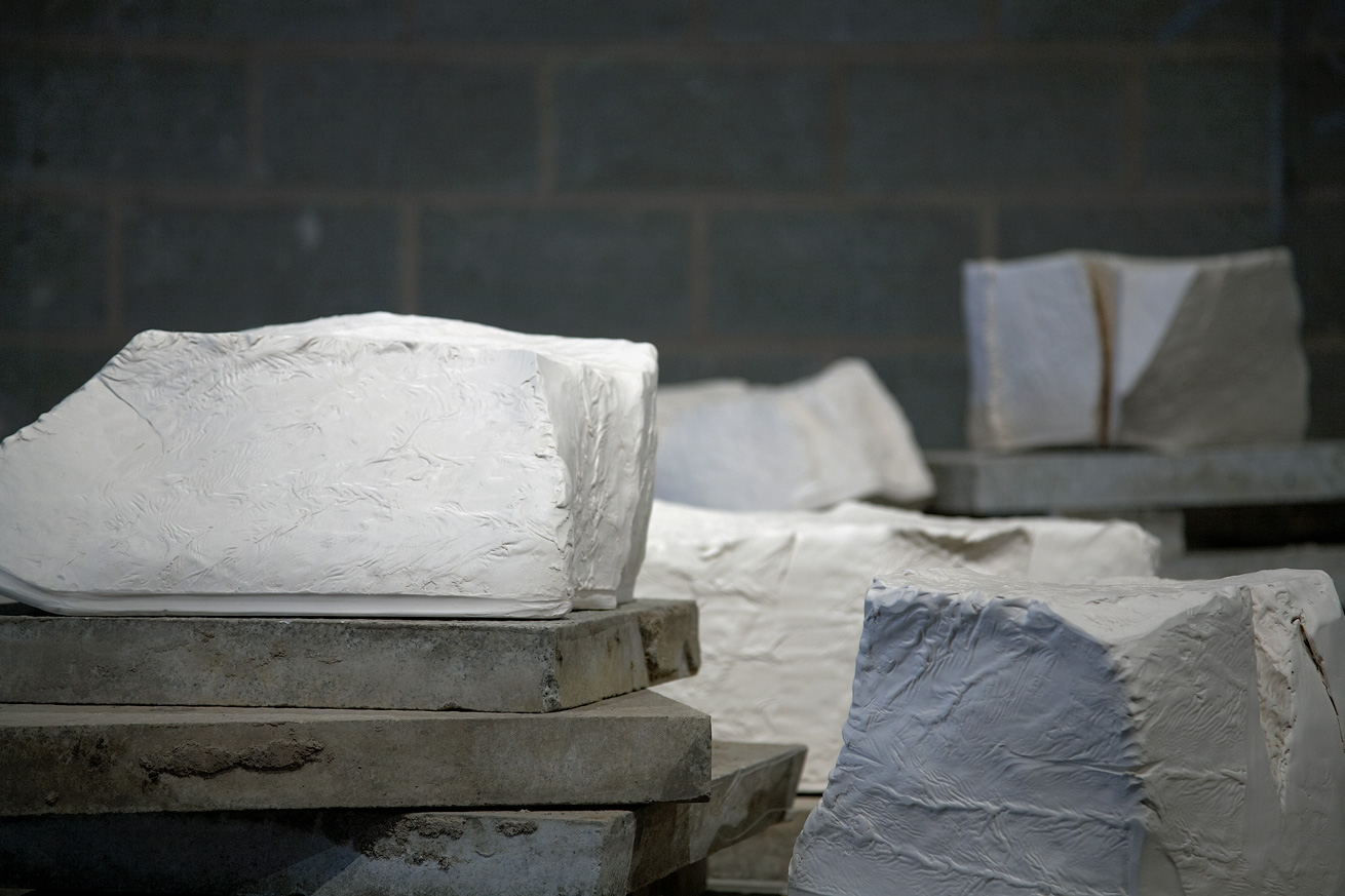 The Ninit – community shares of meat and blubber of hunted whale – are apportioned equitably to ensure that everyone benefits from a successful hunt. The pieces of the dismembered whale body, its thick, fatty parts, light and energy supplied with blood, are named Muktuk. Muktuk is the traditional Inuit and Chukchi meal of frozen whale skin and blubber. Pieces of white ceramic scattered on the ground, as if after a butchering in which no knife or blade were used, only words. Thoughts torn to pieces, to feed on.
